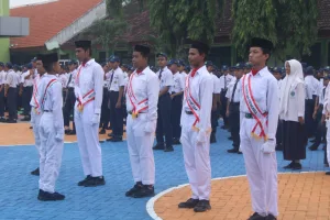 Sidoarjo – MTsN 3 Sidoarjo menyelenggarakan upacara bendera Merah Putih dan upacara hari Pahlawan pada Senin, 10 November 2025 di lapangan madrasah. Petugas upacara kali ini berasal dari kelas 9A.